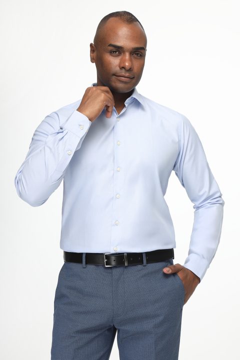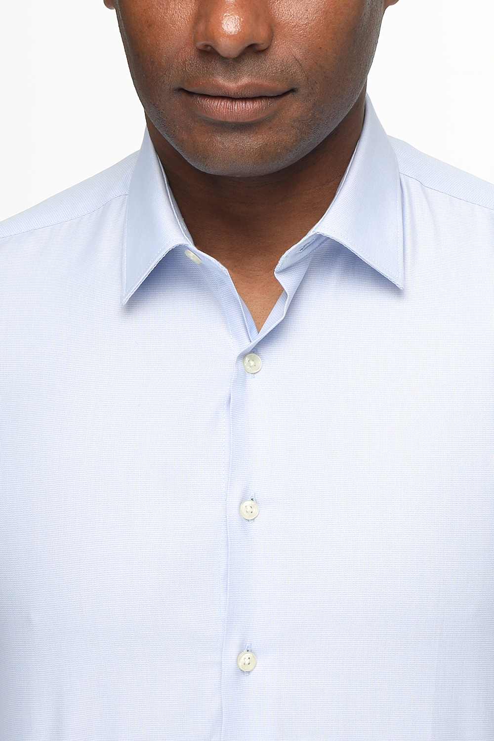 خيار كلاسيكي يناسب جميع الأوقات، مصمم بقصة ضيقة، ويتميز بياقة كلاسيكية وأساور أكمام مفردة. يُغسل بعناية. قطن 100%