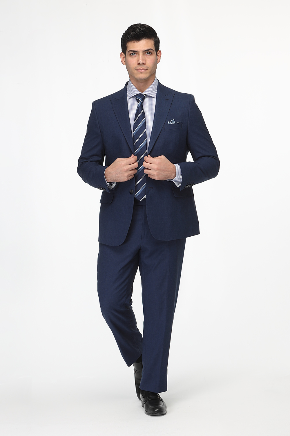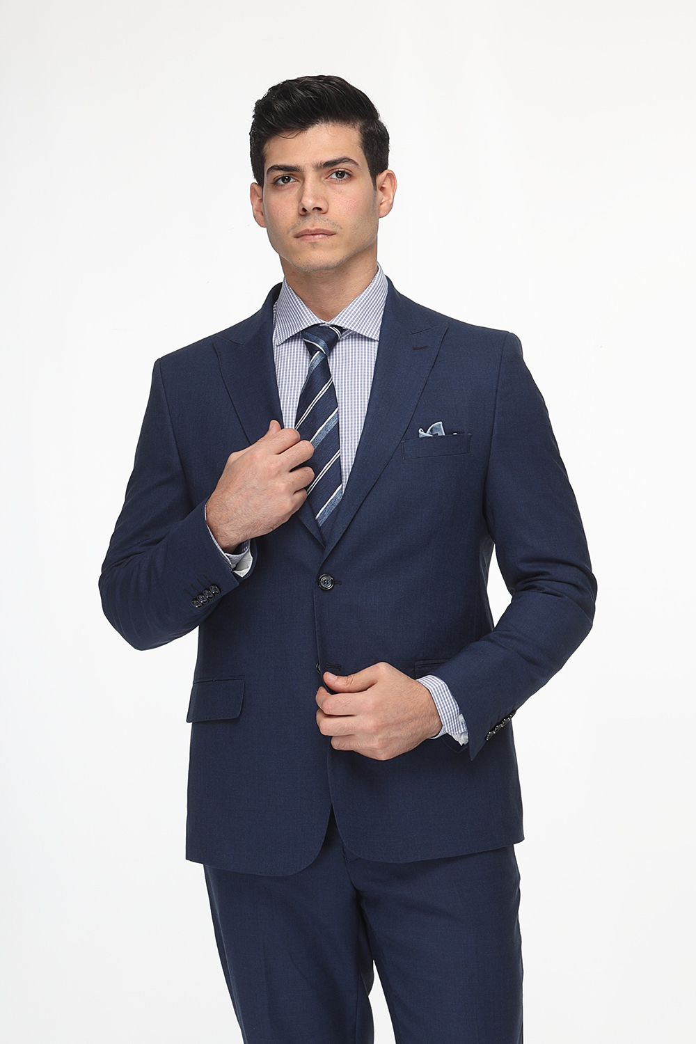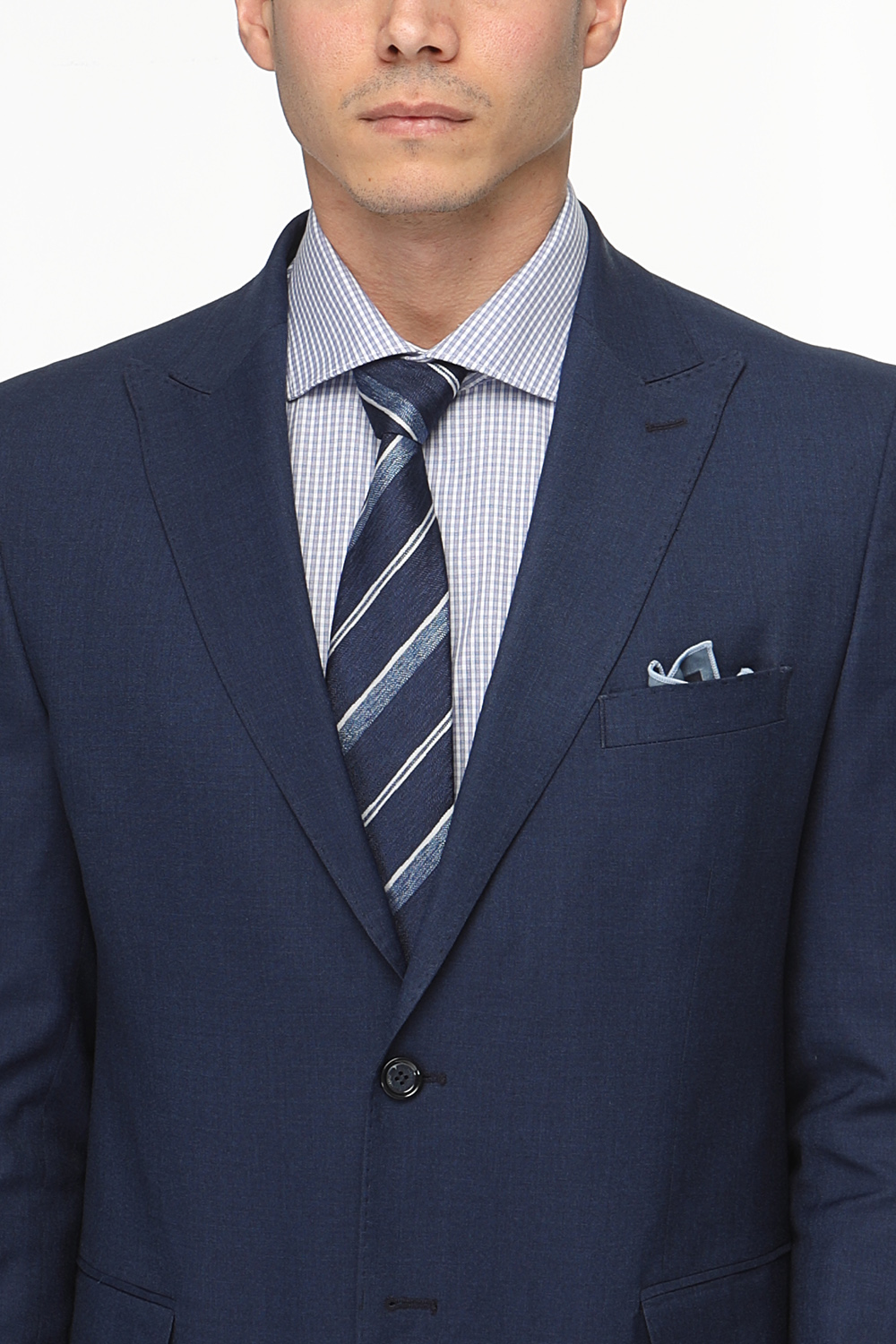 A classic, sophisticated suit that’s perfect for any elegant occasion, this stunning two-piece suit features a lapel, flat-front pant. All lapel suit pants have a 6-inch jacket drop, except for size 62, which has a 2-inch jacket drop. Lightweight, perfect for all months. Dry clean only.